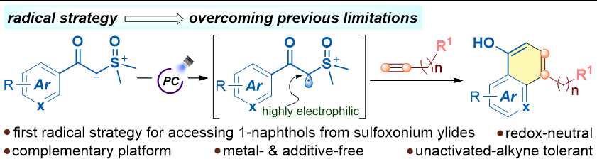 [12] Hongyin Huang, Yilian Lu, Mengqi Gui, Nianxing Wang, and Huaifeng Li*. Redox-Neutral Radical Annulation of Challenging Alkynes with Aryl Sulfoxonium Ylides for 1‑Naphthol Synthesis, Org. Lett., 2025, 27, 13957-13961.