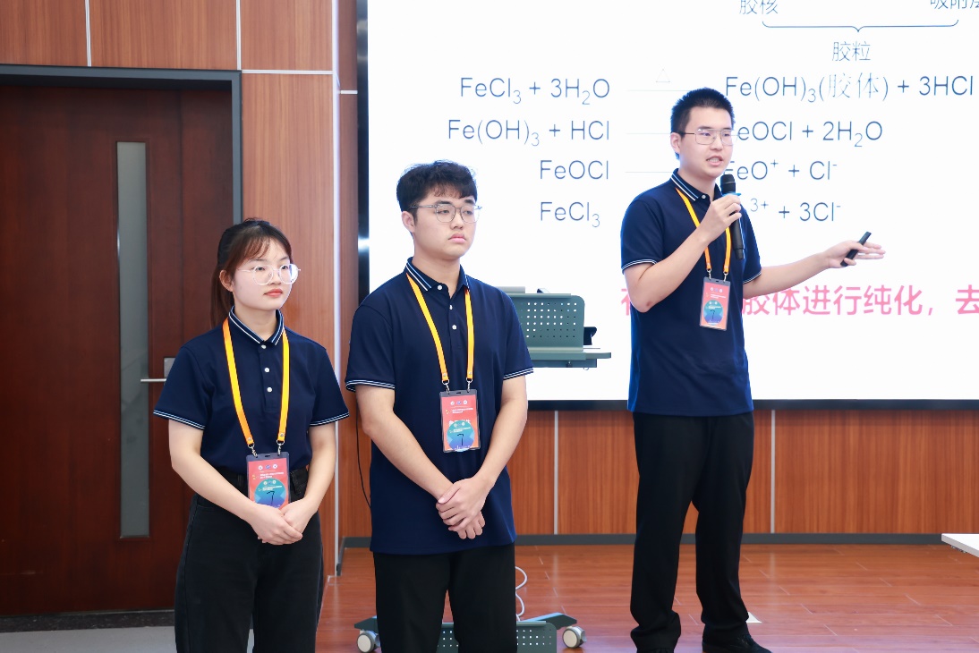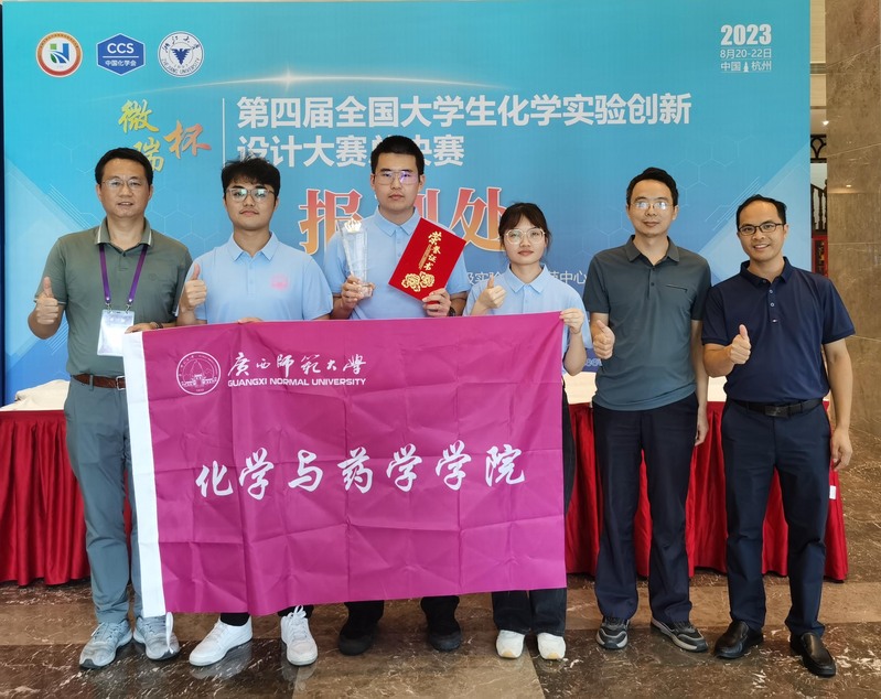 7月26日-28日在吉首大学举办的华南赛区中,我院三支队伍中李得胜、梁峰、蒋玉婷同学的作品《电泳法测量胶体ζ电势的实验方法探究和仪器创新》(改进实验,指导教师:董家新和刘冬成)和黄毅谨、吕自容、刘正琪同学的作品《化学密语——青氢丝印守正道,智真笃行创新篇》(科普实验,指导教师:林天然和侯丽)均荣获华南赛区一等奖;朱燕、袁睿娟、于潮兰同学的作品《“金果”闪闪福万家,无与“伦”比保粮安——金果榄中昆虫拒食活性物质发现之旅》(新创实验,指导教师:廖海兵和张立军)获华南赛区二等奖。根据华南赛区竞赛规则,最终改进实验队代表我校进入全国总决赛的比拼。在总决赛中,我院学子不畏强手,顽强拼搏,通过创新仪器设计,勇夺特等奖。使我校再次成为获该顶级学科竞赛最高奖项的唯一一所“双非”高校;在全国师范大学中,仅有北京师范大学和我校获得该项学科竞赛的最高奖项,充分展示了我院学子的优秀专业素养、求实创新和团结合作的学科品质。