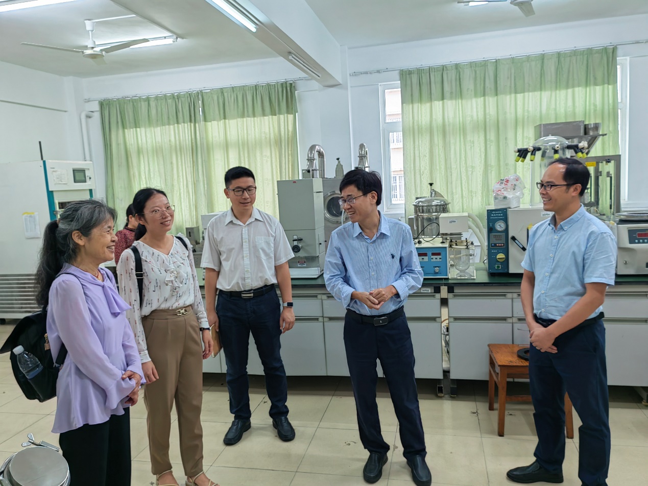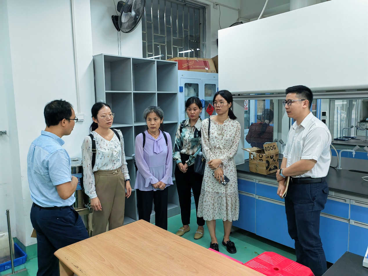 邱建华副院长对卢福芝副院长一行的到来表示热烈欢迎。实验教学中心副主任刘冬成、物理化学教研室副主任董家新老师和应化、化工教研室副主任蒋卷涛老师分别介绍了实验教学中心对学生参与学科竞赛准备工作的情况。药学教研室副主任陈家念老师介绍了制药工程实验室建设和实验课程建设情况。实验教学中心刘广老师介绍了实验室安全管理情况。随后河池学院老师来到实验教学中心和制药工程实验室进行实地参观,考察实验室建设与管理情况。