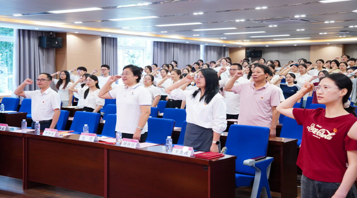 党委委员依次为新发展党员佩戴党员徽章,在党委主要负责人领誓下,面对鲜红的党旗进行了庄严的宣誓,全体参会党员一起重温了入党誓词,以铮铮誓言表达要坚定不移听党话、跟党走的决心,以更加强烈的责任感和使命感,争当先锋、真抓实干、勇毅前行。