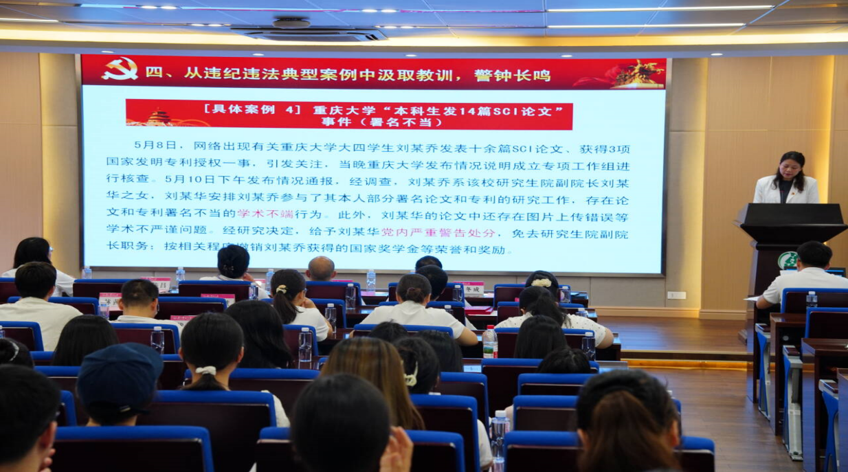学院党委相关负责人作《绷紧廉洁之弦,恪守纪律底线》专题微党课。强调党员干部须常怀敬畏之心,筑牢思想防线,严守纪律红线。要以自我革命精神反躬自省,在权力面前知止,在诱惑面前坚定,用清正廉洁践行对党忠诚,永葆政治本色。