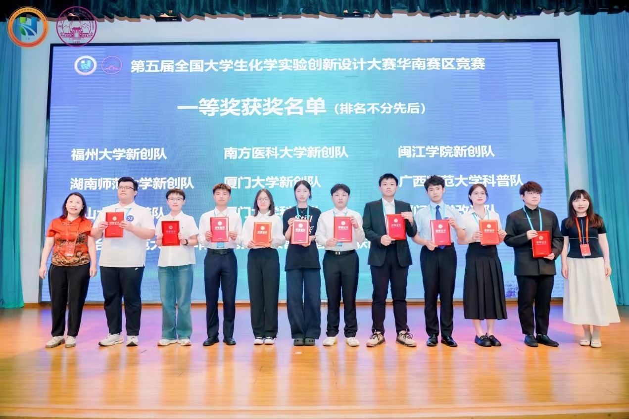 2025年8月21-24日,“小聪-德祥科技杯”第五届全国大学生化学实验创新设计大赛总决赛在兰州大学成功举办。我院学子李卓洋、苏宏钦和梁焕华同学(指导老师:陈华、马兆玲)组成的科普队表现优异,荣获全国总决赛一等奖。此外,我校因成功承办第五届全国大学生化学实验创新设计大赛华南赛区竞赛,荣获竞赛“优秀组织奖”。