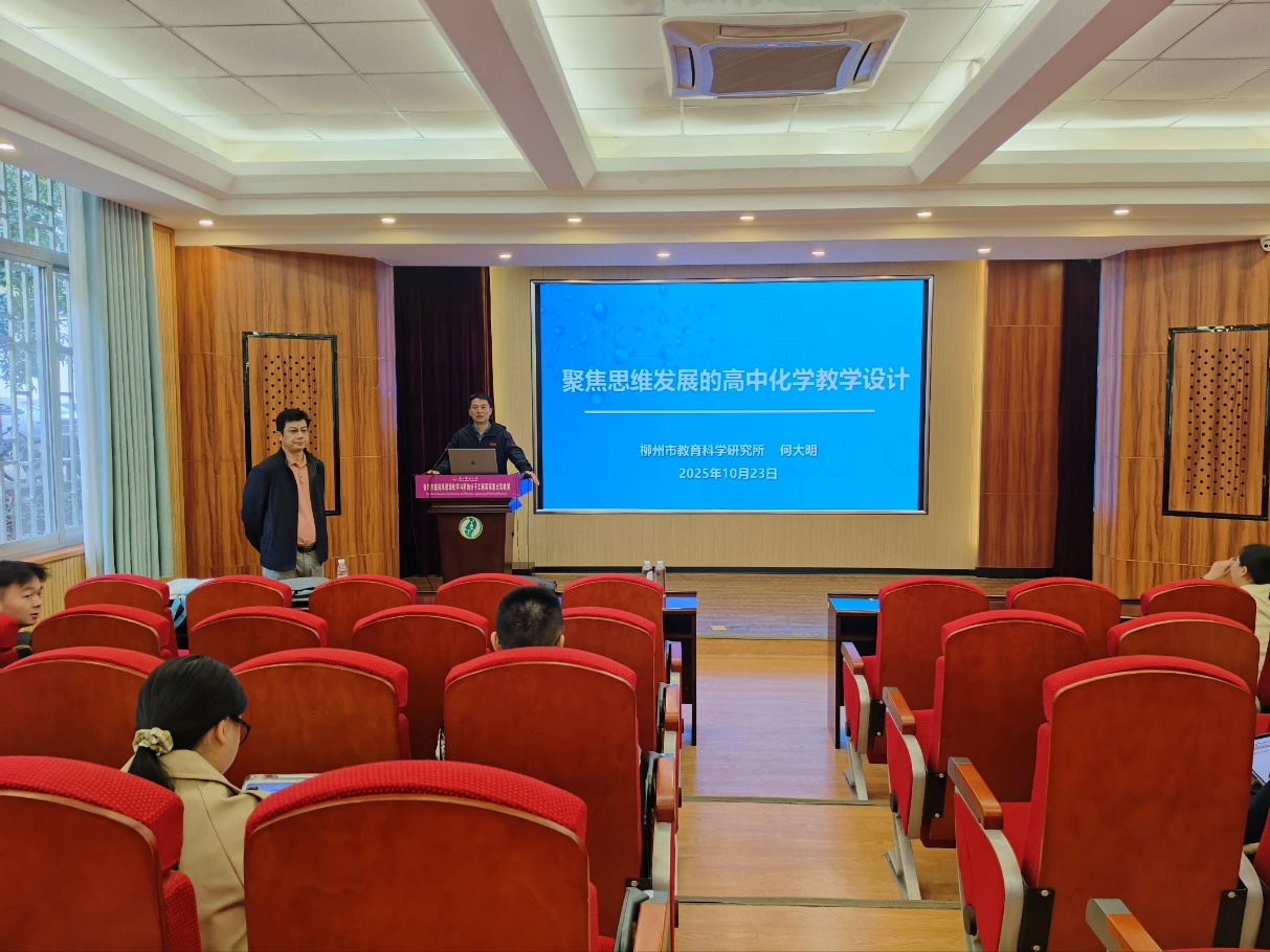 为切实提高学院毕业生求职技能,帮助更多有志青年顺利走上中学教师岗位,2025年10月23日下午,化学与药学学院在重点实验室2号楼101报告厅成功举办中学化学教学设计辅导班。本次辅导班特别邀请到柳州市教育科学研究所化学教研员何大明老师担任主讲人,学院本研毕业生积极参与。