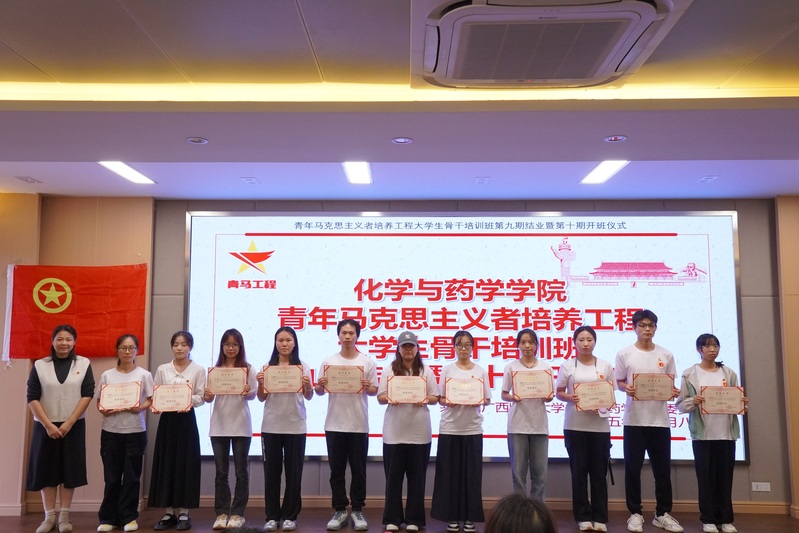 为持续深化青年马克思主义者培养工程,筑牢青年学生的理想信念根基,近日,化学与药学学院第九期青马班结业仪式暨第十期开班仪式顺利举行。学院党委副书记、团委书记、团委副书记、辅导员代表及青马班成员共同参与了本次活动。
