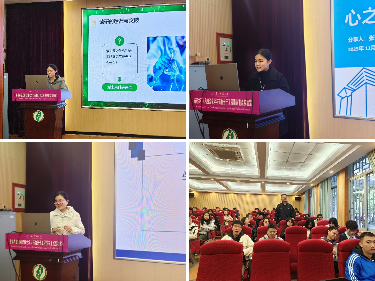 为促进学院研究生之间的学术交流与思维碰撞,进一步帮助研究生新生优化研途规划,学院于2025年11月4日上午在重点实验室2号楼101报告厅举办了研究生国家奖学金获得者经验分享会,学院2025级生物与医药、无机化学专业同学参加了本次活动。