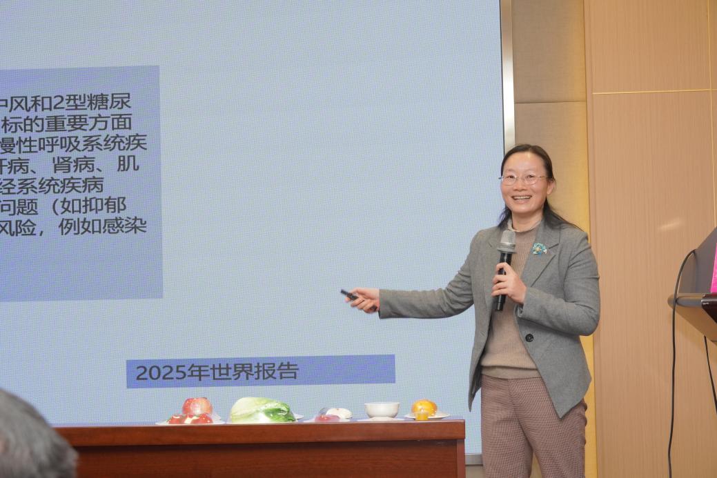 活动核心环节,桂林市人民医院秦胜花教授带来《健康从管理体重开始》专题授课,内容涵盖肥胖定义与危害、病因、诊断与分型及健康管理策略。她结合临床经验,讲解高BMI与癌症、心脏病等慢性病的关联,解析遗传、生活方式等致胖因素,通过诊断标准表直观展示BMI、腰围等核心指标判定方法。实践指导部分,重点分享限能量、高蛋白等饮食模式,及有氧与抗阻结合的运动策略,强调行为管理对长期体重维持的重要性,帮助师生建立系统科学的体重管理认知。
