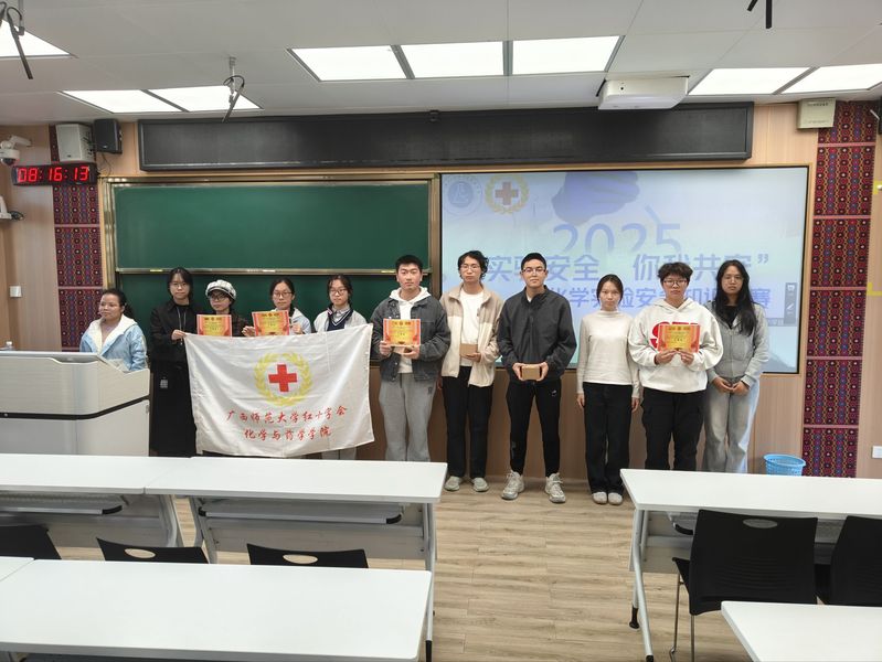 为了让同学们了解更多的实验安全常识,提高安全防范意识和能力,真正将实验安全知识运用到学科实验中,真正落实“安全第一,预防为主”的方针,共同营造浓厚的实验安全氛围,2025年11月23日,化学与药学学院红十字会在理科综合楼404教室举办了“筑牢安全防线,护航实验之路”化学实验安全知识竞赛活动。