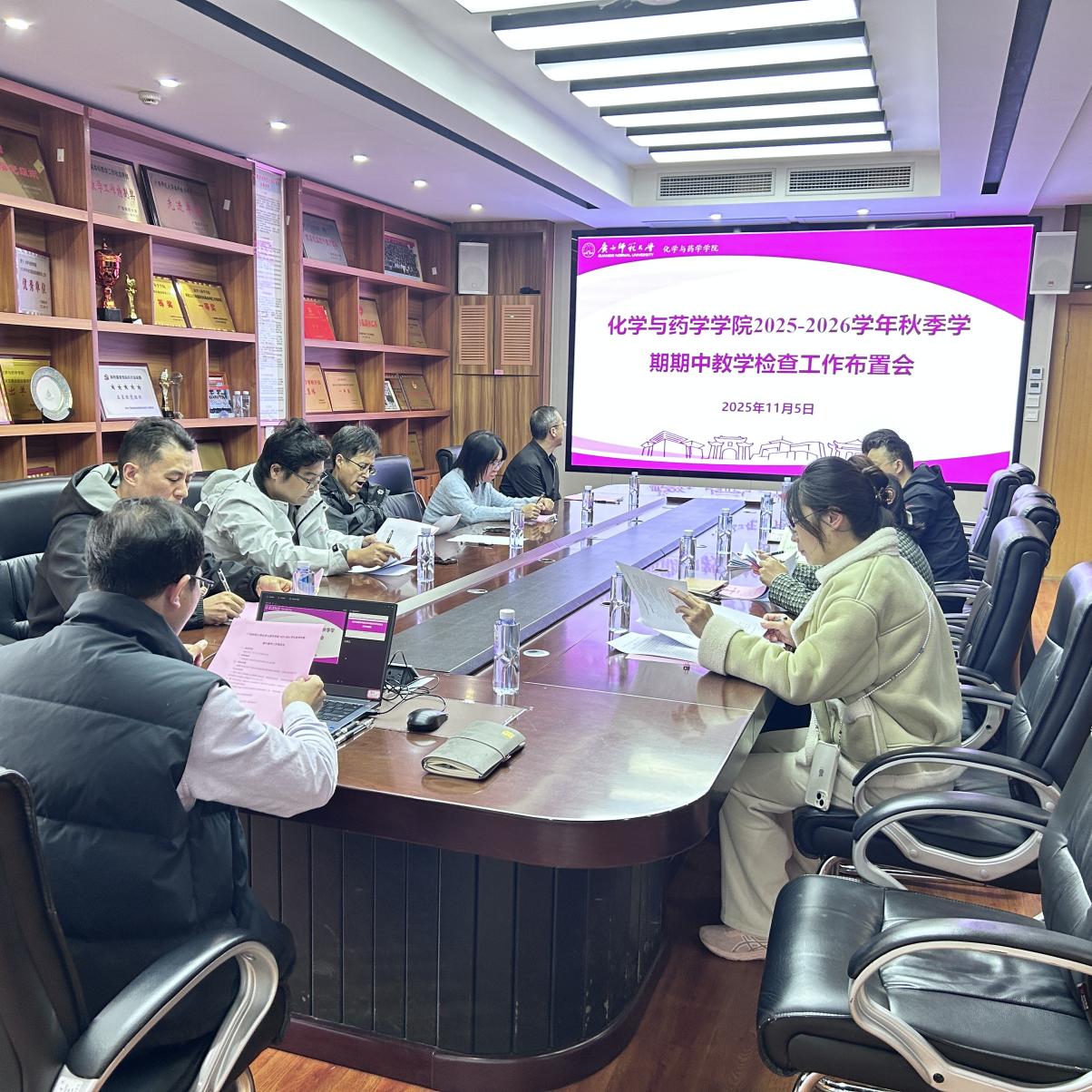 为全面掌握本学期本科教学运行状况,提升教学管理与服务水平,学院近期系统部署并有序开展了期中教学检查系列工作。11月5日,学院分管本科教学负责人在化学楼212会议室主持召开期中教学检查工作布置会,各教研室主任参会。会议传达了学校相关工作要求,并就检查内容、组织形式与时间节点等进行具体安排,强调各教研室应认真开展自查,落实各项教学检查任务。