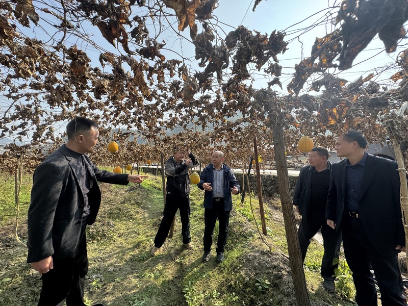 随后,在瓜里村驻村第一书记的引导和详细介绍下,学院党政领导班子实地考察了村里的瓜蒌种植产业。第一书记全面介绍了瓜蒌种植的规模、技术管理、市场销售、经济效益以及产业带动村民增收等情况。他们对瓜蒌产业作为特色农业助力乡村振兴取得的成效表示肯定,并结合化学与药学学科的专业视角,就产品深加工、品质提升、产业链延伸等方面提出了具有参考价值的意见和建议,探讨了未来科技助力产业升级的可能性。