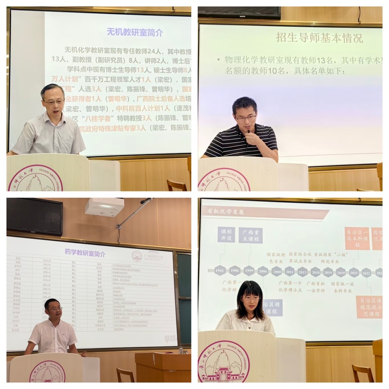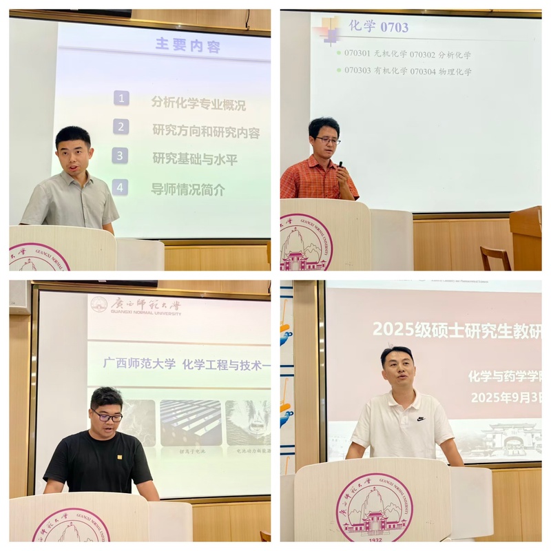 为帮助2025级研究生新生快速了解学科体系、明确研究方向,9月3日下午,化学与药学学院在第二文科楼0414教室举办教研室主任见面会。学院各教研室负责老师悉数到场,与全体新生面对面交流。