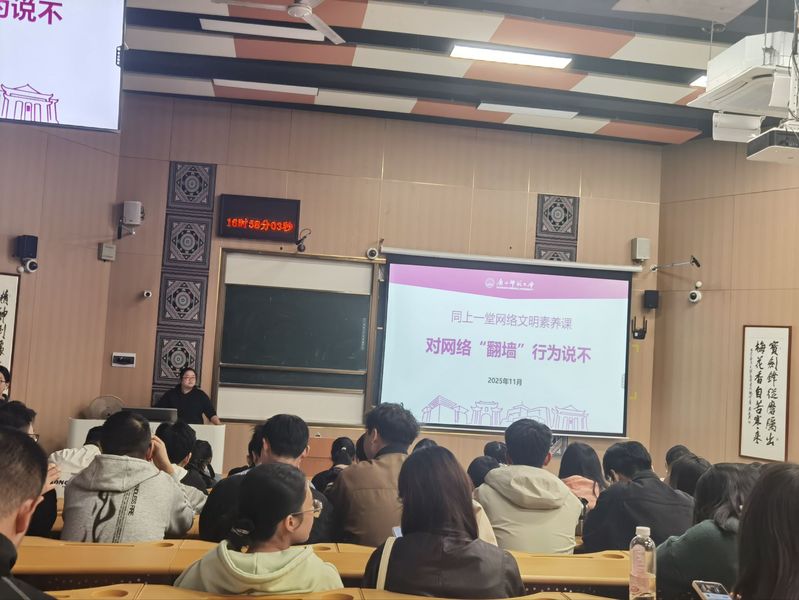 辅导员围绕网络“翻墙”行为定义,结合国家相关法律法规,重点剖析了“翻墙”行为带来的法律风险、信息安全隐患、价值观侵蚀等危害,通过研究生因“翻墙”行为感染病毒、获刑等真实案例,让新生深刻认识到“翻墙”的严重后果。此外,辅导员还向新生介绍了学校图书馆外文数据库等合法信息获取渠道,指导大家通过正规途径满足学术研究需求。最后,全体新生认真阅读倡议书内容,郑重签下自己的名字,承诺将严守网络法律法规,不使用“翻墙”工具,主动抵制不良信息,争做文明守法的新时代网民。