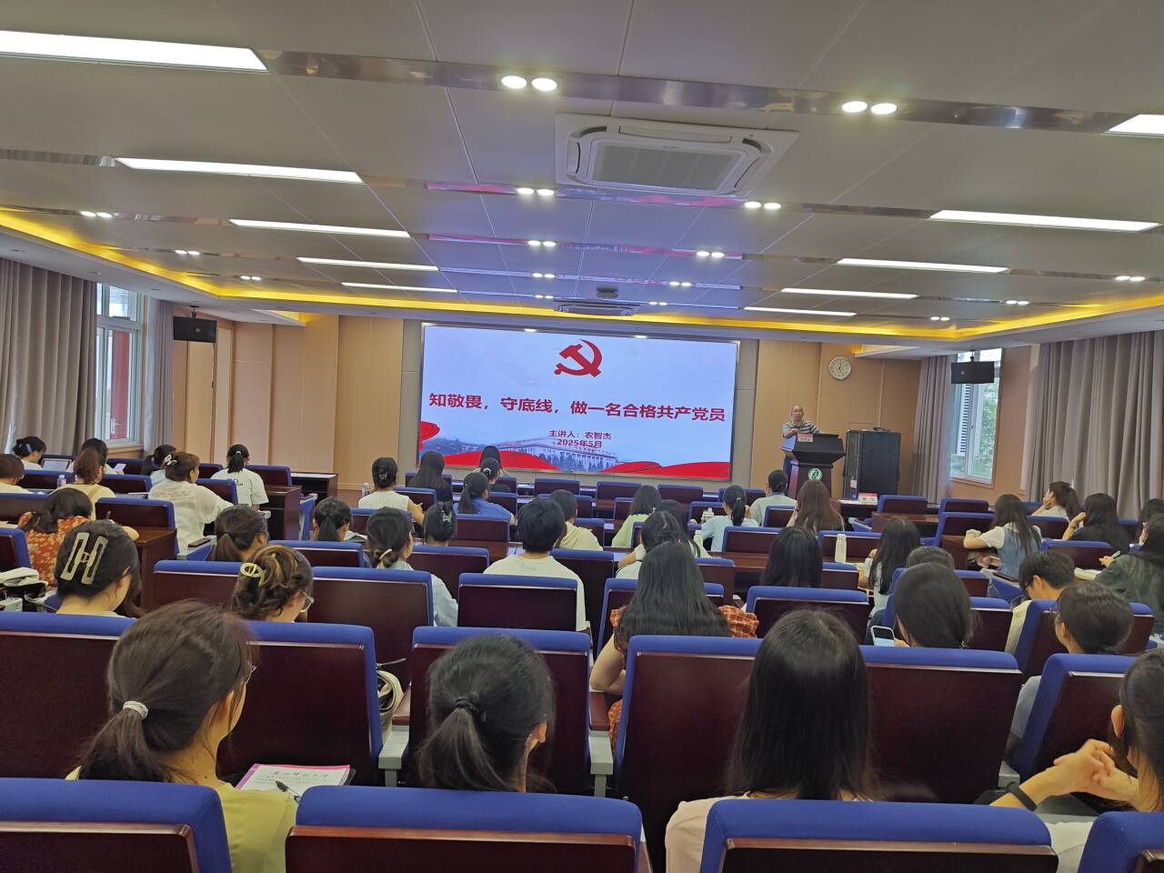 深入学习贯彻习近平新时代中国特色社会主义思想,严把党员发展“入口关”,帮助党员扣好“第一粒扣子”,5月23日,学院在育才校区国重1号楼310报告厅开展“知敬畏,守底线,做一名合格共产党员”专题党课,学院党委负责人讲授,发展对象、预备党员100余人参会。