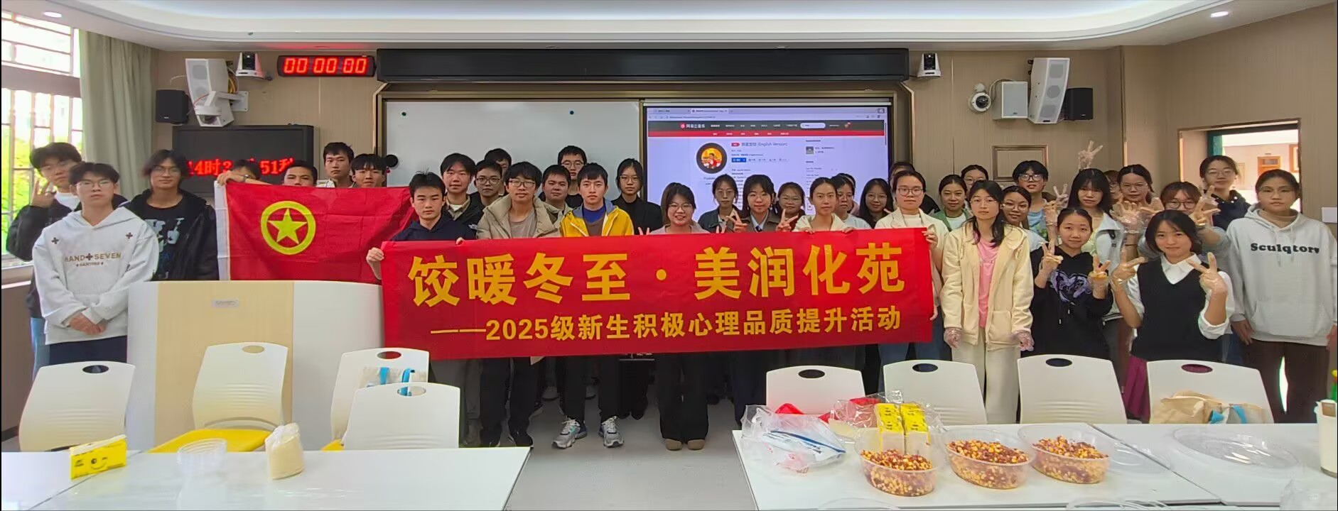 为帮助2025级本科新生缓解学习压力、培育积极心理品质,在冬至佳节来临之际,12月20日,化学与药学学院在育才校区一站式学生社区、理科综合楼教室开展了“饺暖冬至・美润化苑”2025级新生积极心理品质提升活动。