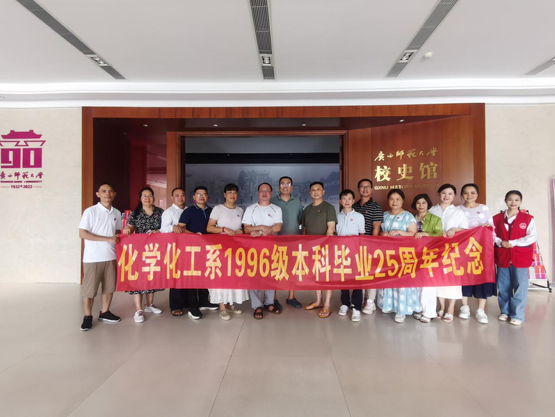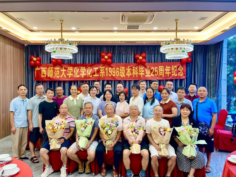 2025年7月18-19日,广西师范大学化学与药学学院(原化学化工系)1996级本科化学教育专业的20余位校友,怀着对恩师和同窗的深切思念,在学院精心组织下,重返母校,与老师、同学相聚。