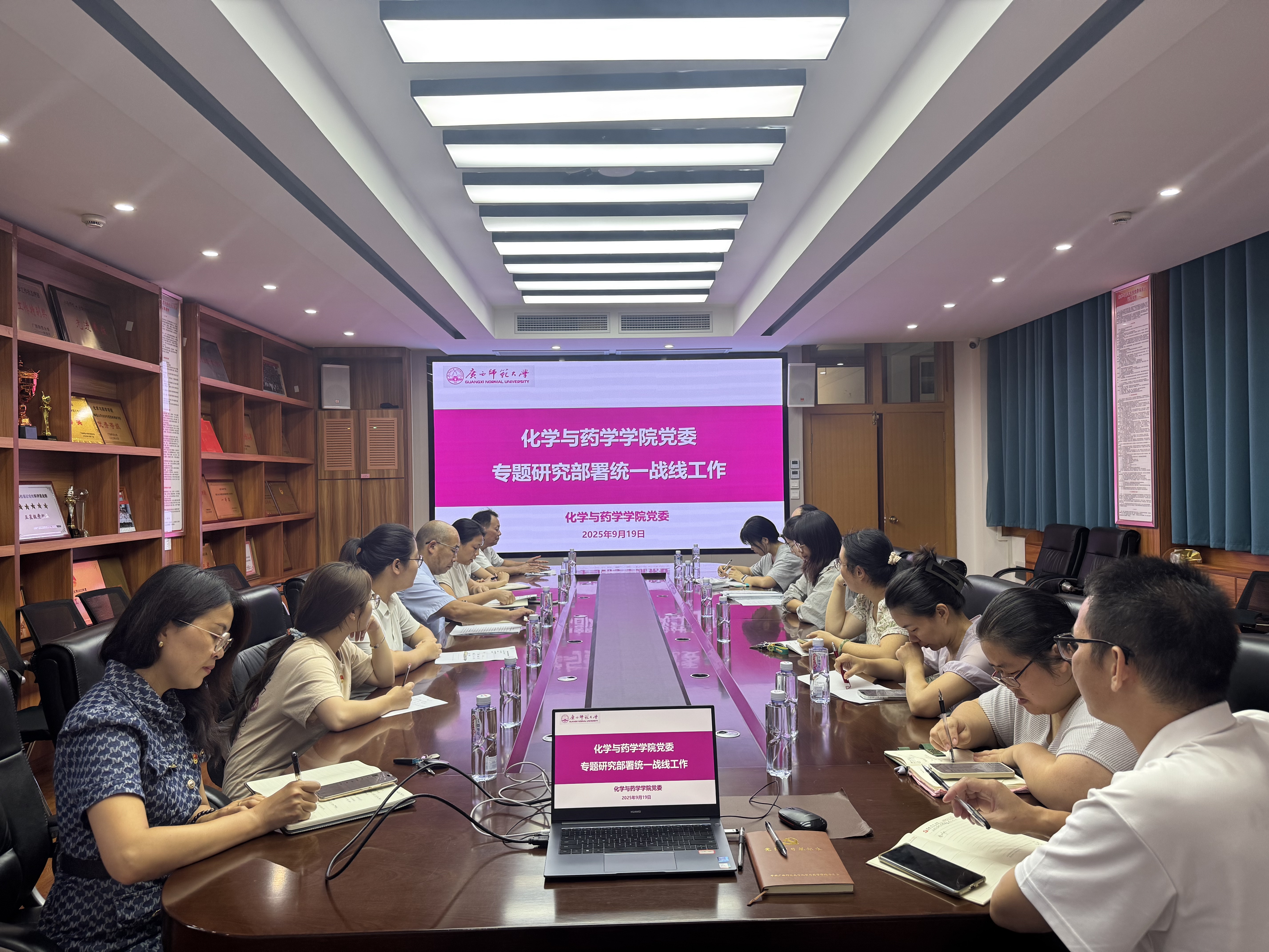 为深入学习贯彻新时代党的统一战线工作要求,切实提升学院统战工作科学化、规范化水平,9月19日,化学与药学学院在育才校区化学楼212会议室召开党委会,专题研究部署统一战线工作。学院领导班子、党委委员、纪委委员、专职组织员参加会议,会议由学院党委负责人主持。