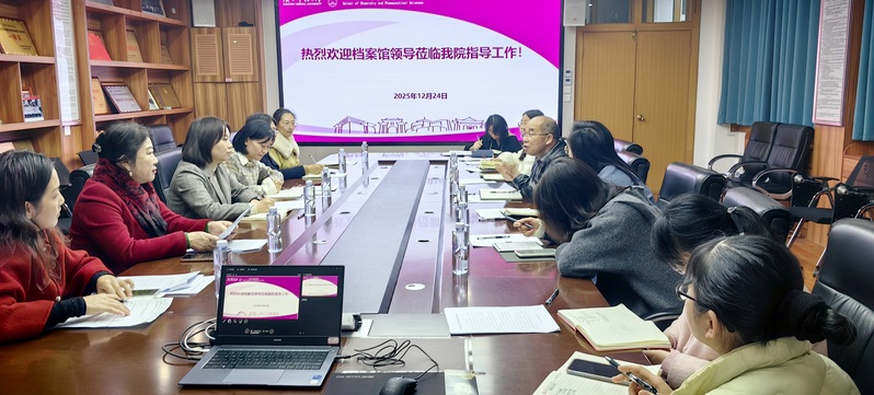 2025年12月24日上午,学校档案馆一行六人在馆长朱会华、副馆长胡峥艳带队,到我院开展档案工作专项调研指导。学院党委书记农智杰、副书记卢洁、副院长沈青及学院各部门档案相关工作人员全程参加调研交流。