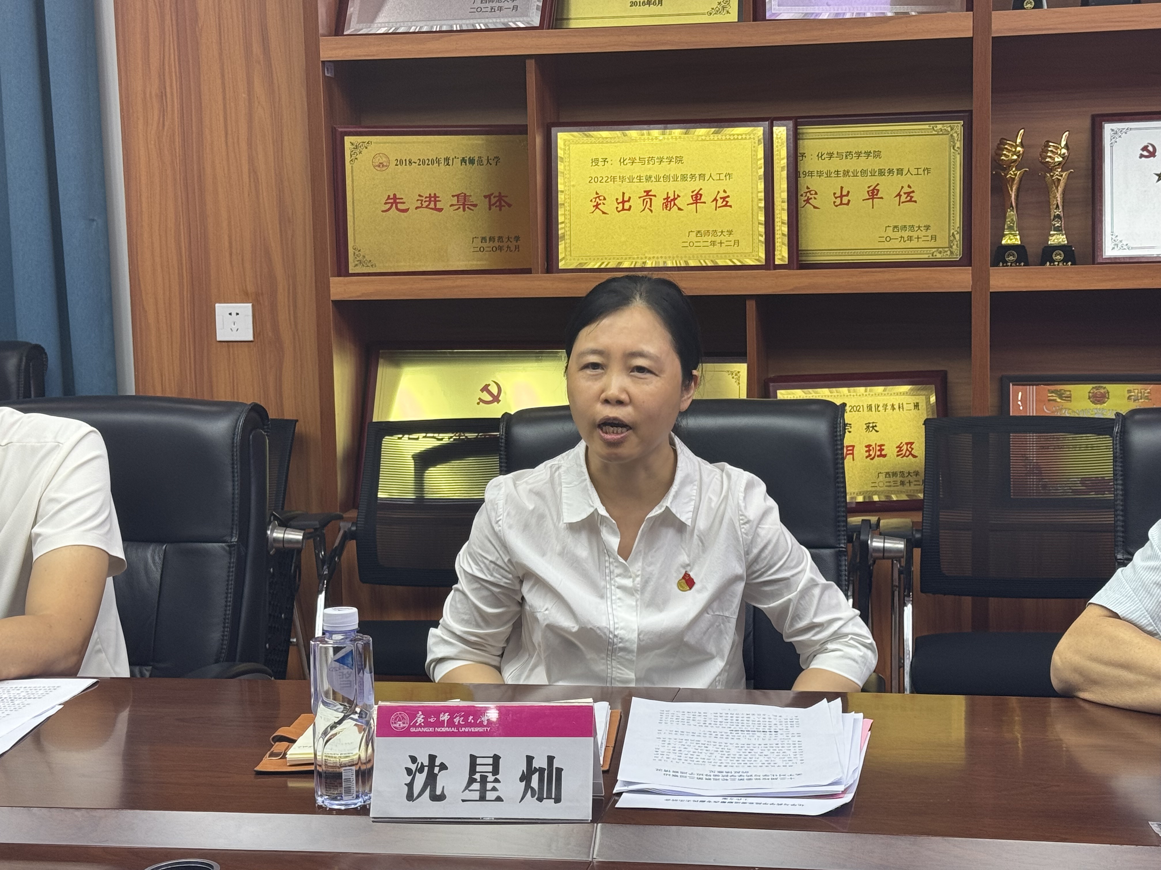 为深入贯彻落实巡察整改工作要求,切实把巡察反馈问题整改到位,不断提升学院党委管党治党与办学治院能力水平,7月4日,化学与药学学院党委在育才校区化学楼212会议室召开巡察整改专题民主生活会。校党委常委、副校长沈星灿,校党委第三轮巡察第二巡察组领导,校党委巡察工作领导小组成员到会指导。学院党政领导班子成员、党委委员、专职组织员参加会议,会议由学院党委负责人主持。
