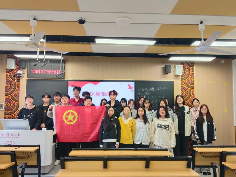 活动伊始,组织委吕东艳清点并核实到场人数,确保会议的有效性。随后主持人简要介绍了会议流程,宣读会场纪律,确保推优工作的严肃性和规范性。接着,进入候选人发言环节,参与发展对象推优的同学们依次上台发言,他们分别从对党的认识、入党动机以及在学习、生活和社会实践中的表现进行阐述。在每位候选人发言结束后,都会有两位参会团员对候选人进行点评,以便更加深入地了解候选人的情况。发言结束后,进行无记名投票。团支书李维然发放团支部“推优”大会表决票,参加此次会议的团员在表决票上选择支持的候选人。投票结束后,韦政佳,潘秋怡和吕东艳三位同学分别唱票、计票和监票。经过评议和投票表决,主持人宣布汪梓晨、郭丹婷、蓝雅婷、黄玉婷、李军柱五名同学成为发展对象候选人,但最终名单由化学与药学学院本科生第四党支部和学院领导共同决定。在会议总结环节,团支书强调,推优工作既是党组织对青年学生的政治考验,更是共青团组织履行“为党育人”职责的具体实践,号召全体团员以身边优秀同学为榜样,主动向党组织靠拢。会议最后,全体团员上台合影留念,至此,本次推优大会圆满结束。