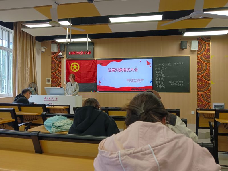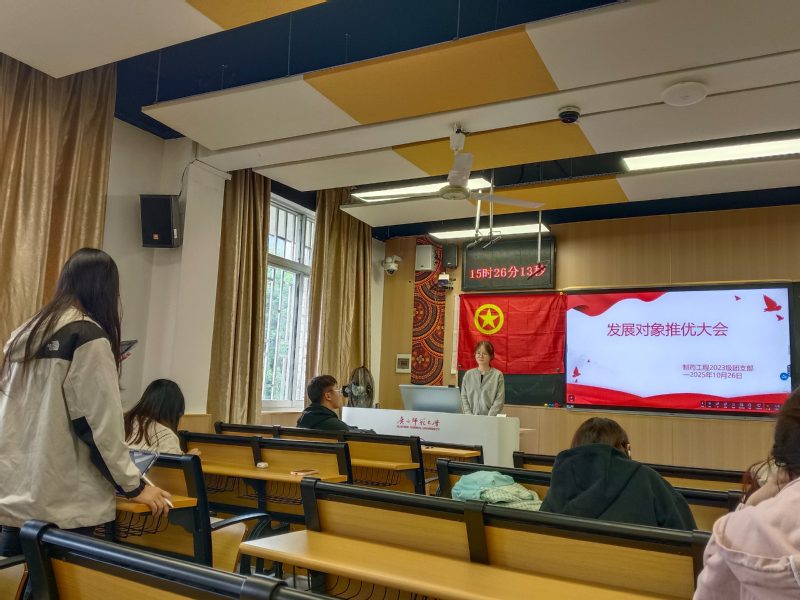 为保证党员发展质量,化学与药学学院制药工程2023级团支部于2025年10月26日下午15:30在文科综合楼教室301召开发展对象推优大会。本次会议由团支书李维然同学主持。