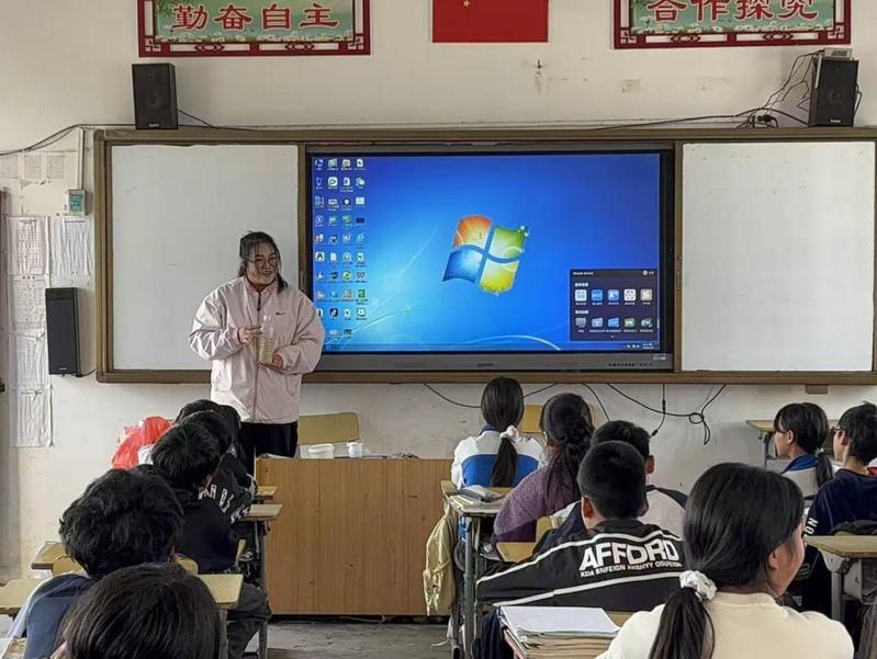实践期间,团队围绕乡村学生科学启蒙与动手实践需求,开设生活化学小实验、颜色变化与物质性质探究、安全化学知识普及、趣味材料科学等课程。队员们一步步演示操作、耐心讲解原理,引导孩子们亲手完成实验、观察现象、记录发现,课堂互动积极、氛围轻松有趣。孩子们在动手操作中直观感受化学变化,主动提问、大胆尝试,逐步提升观察能力与动手能力。参与实践的队员表示,一周的支教让大家走出课本、走进课堂,把专业知识转化为易懂有趣的科普内容,既锻炼了沟通表达与课堂组织能力,也真切体会到乡村教育的需求与青年学子的责任。看到孩子们从好奇到专注、从生疏到熟练完成实验,大家更坚定了用所学服务基层的初心。
