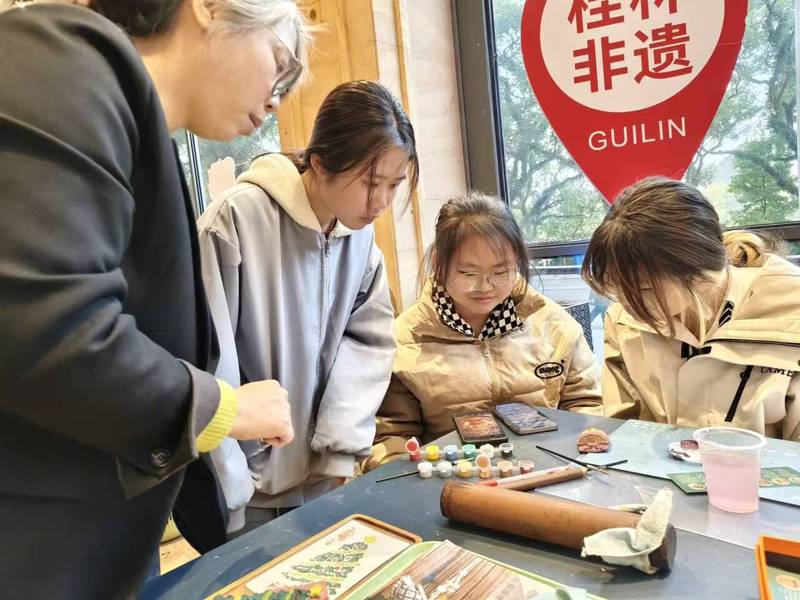 1月11日至17日,为调研桂林傩文化的发展,更好地学习非遗文化,进而推动非遗文化的发展,化学与药学学院“守艺而行队”的廖芸宇、杨春花、刘丹丹、陈宇静、蓝秋杏一行人去到桂林秀峰区非遗文化体验馆和张家村傩文化展示馆进行学习与交流。
