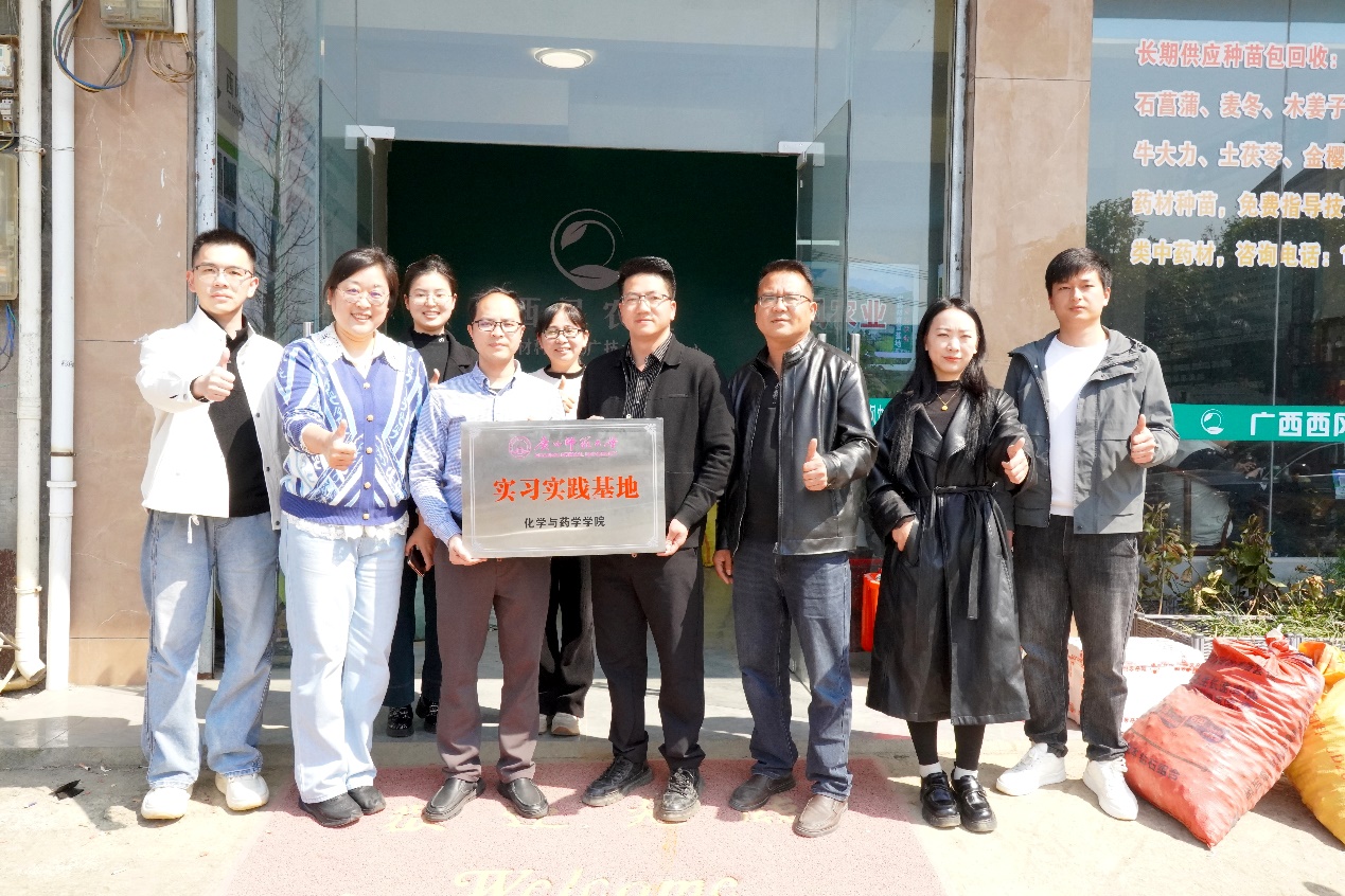 为深化产教融合、拓宽就业渠道,3月13日,广西师范大学化学与药学学院纪委主要负责人、行政相关负责人率师生代表,先后走访广西西风农业发展有限公司和桂林鑫合昌中药材开发有限公司,开展访企拓岗专项行动,并举行实习实践基地挂牌仪式。