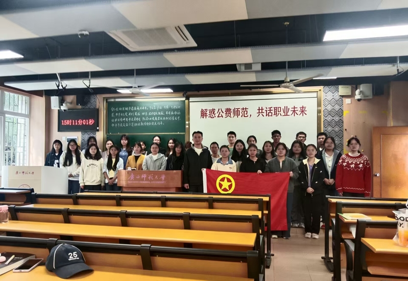 为帮助公费师范生明确职业方向、增强专业认同感,3月13日,化学与药学学院2024化学(地方公费师范生)团支部在理科综合楼202教室开展“解惑公费师范·共话职业未来”主题团日活动。本次活动并特邀唐劲军老师进行专业讲解与职业指导,2024级与2025级化学公费班成员共同参与。